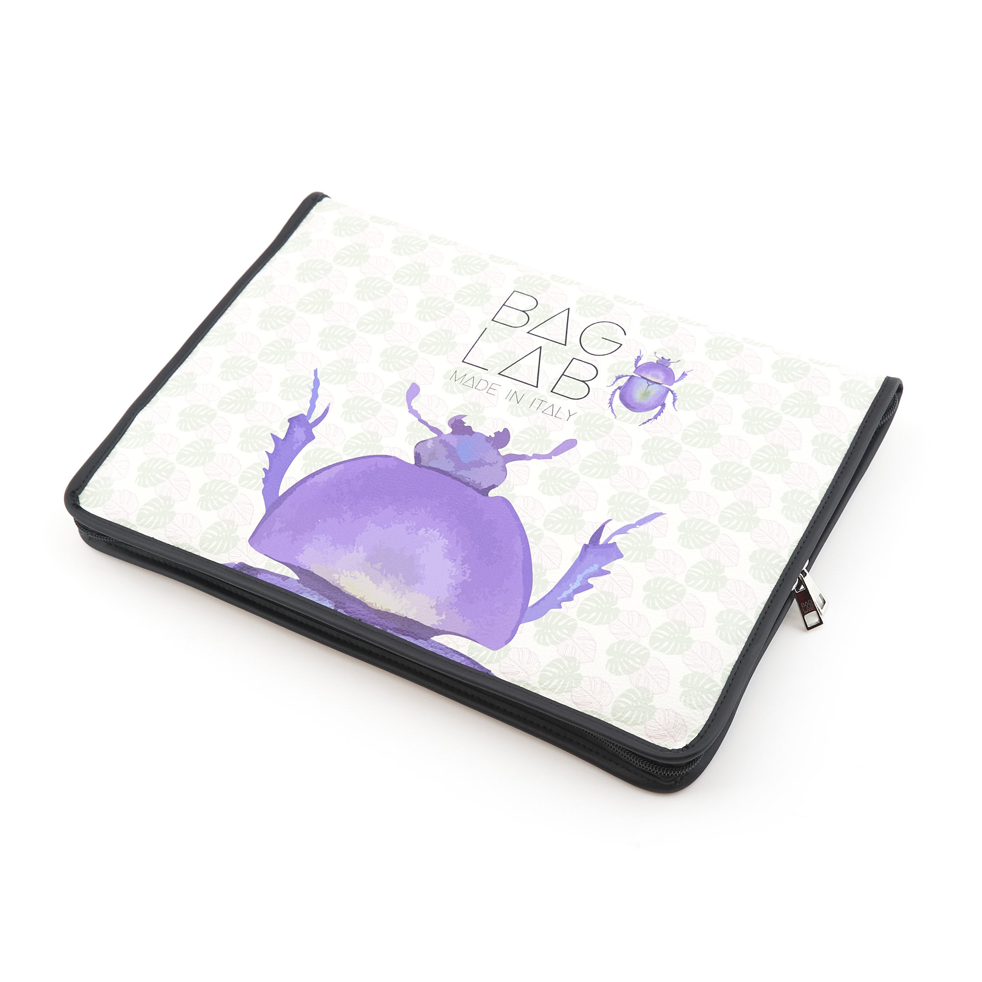 Apertura a libretto con un’avvolgente gommapiuma e chiusura mediante zip.